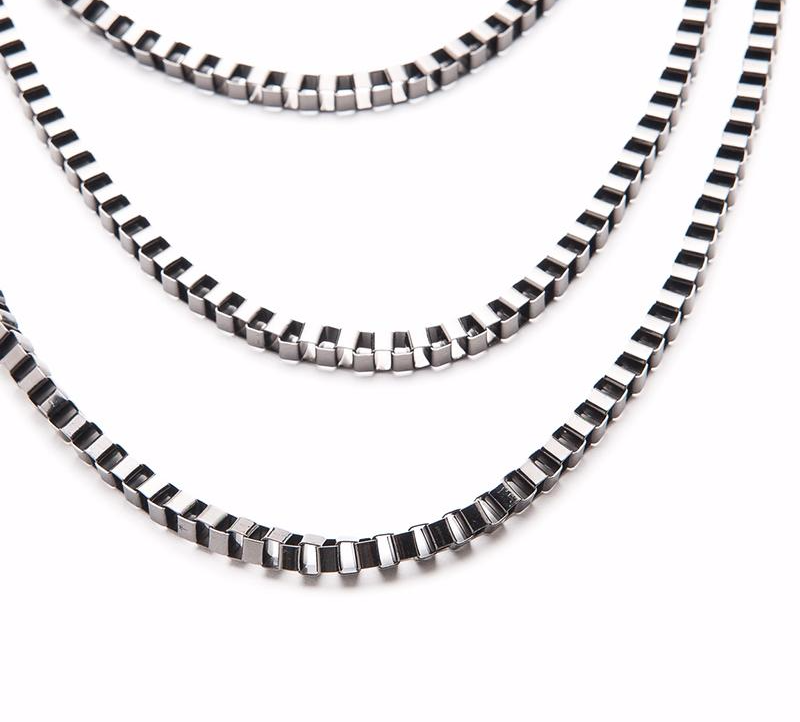 - Chain size 1st layer 45cm long, 4mm width, 2nd layer 54cm long, 4mm width, 3rd layer 64cm long, 4mm width